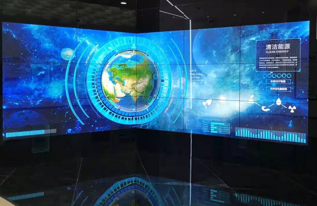 該區(qū)域?yàn)?2臺(tái)投影機(jī)投射出的L型裸眼3D沙盤(pán),展出了,鐵路和公路交通圖,礦產(chǎn)區(qū)域分布情況;以及“光伏領(lǐng)跑 綠色發(fā)展”主題影片,一同感受陽(yáng)泉光伏領(lǐng)跑者示范基地一路走來(lái)的光輝歷程。