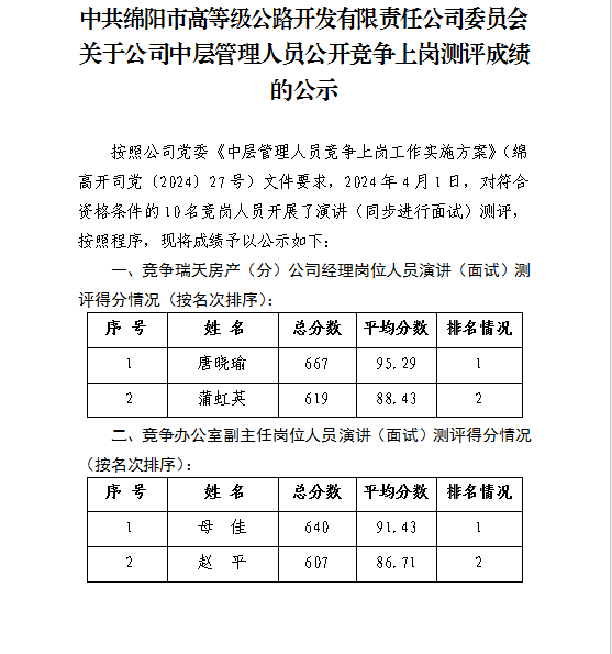 招聘公告 面試成績 擬聘人員信息