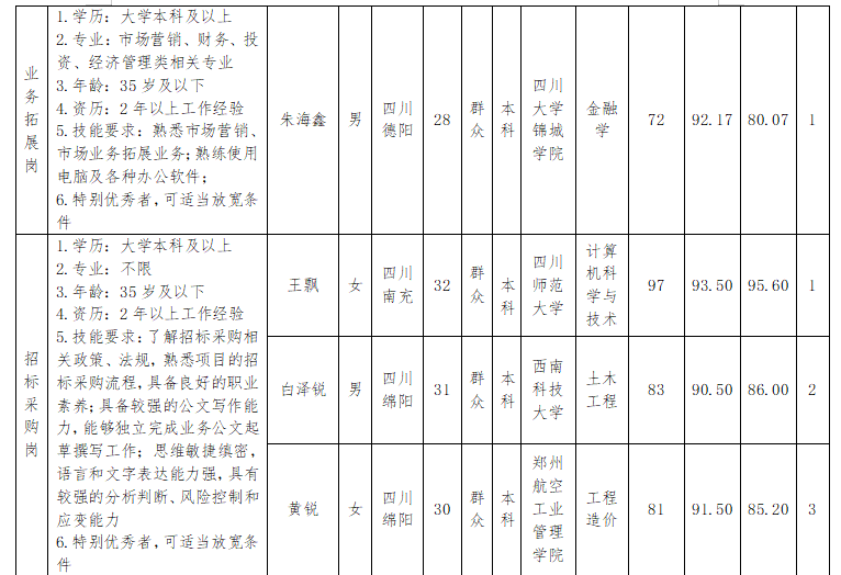 根據高開司發(fā)布的招聘公告及招聘相關規(guī)定,經筆試、面試等程序,現(xiàn)將成績予以公示。